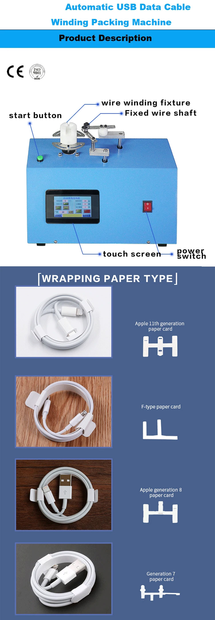 Macchina imballatrice per avvolgimento di cavi dati USB Modalità : WPM-2024BPotenza 3000 WUtilizzo: Dimensioni dell'avvolgimento: L400 * W360H300 Peso:20 kg- Richiedi un preventivo